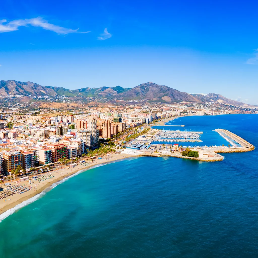 Fuengirola ligger strategiskt mellan Benalmádena och Mijas Costa och är en levande kuststad där traditionell spansk atmosfär möter moderna bekvämligheter. Staden har en av Costa del Sols längsta strandpromenader – cirka 8 kilometer – och breda stränder. Tack vare det platta landskapet är det enkelt att ta sig fram till fots eller med cykel. I kontrast erbjuder grannkommunerna Benalmádena och Mijas ett mer kuperat och naturskönt område.